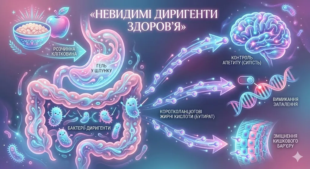 Ми звикли думати, що мозок — це головний командний центр, який керує всім тілом згори донизу. Але останні дослідження перевертають це уявлення. Існує потужний зворотний зв’язок — так звана вісь «кишечник – мозок». Виявляється, те, що ви їсте, безпосередньо впливає на вашу пам’ять, стресостійкість і навіть ризик розвитку хвороби Альцгеймера. Головним героєм у цій історії знову є клітковина.